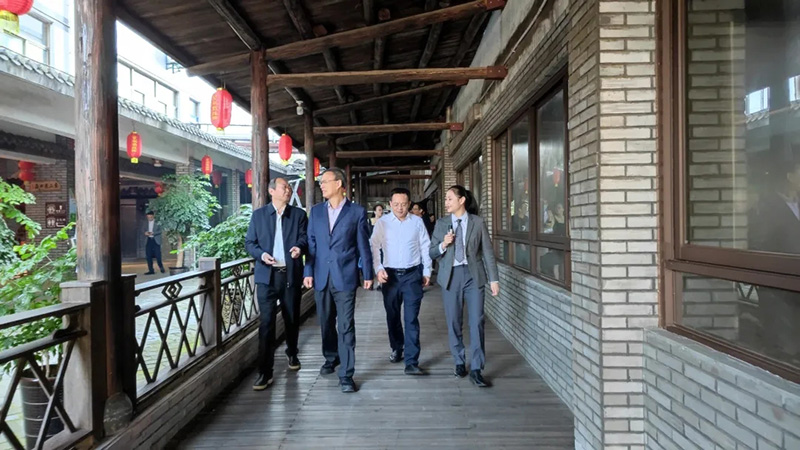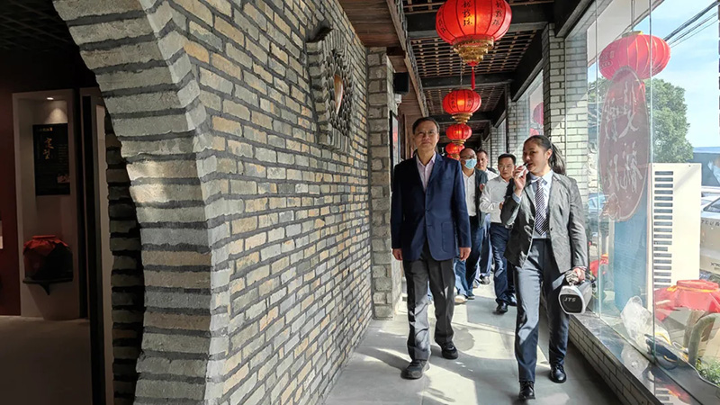 福建雙龍戲珠酒業(yè)有限公司董事長(zhǎng)黃德鋒向調(diào)研組一行詳細(xì)介紹企業(yè)生產(chǎn)經(jīng)營(yíng)、品牌建設(shè)及新廠區(qū)規(guī)劃情況。調(diào)研組先后參觀了東南醬酒文化館、自調(diào)酒中心、建甌酒史館、釀造車間及洞藏儲(chǔ)酒區(qū)——雙龍洞。