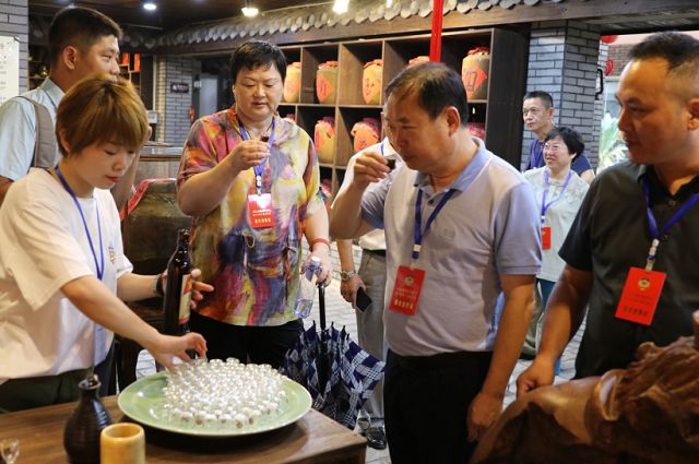 領(lǐng)導(dǎo)們品嘗雙龍戲珠西坑紅老酒